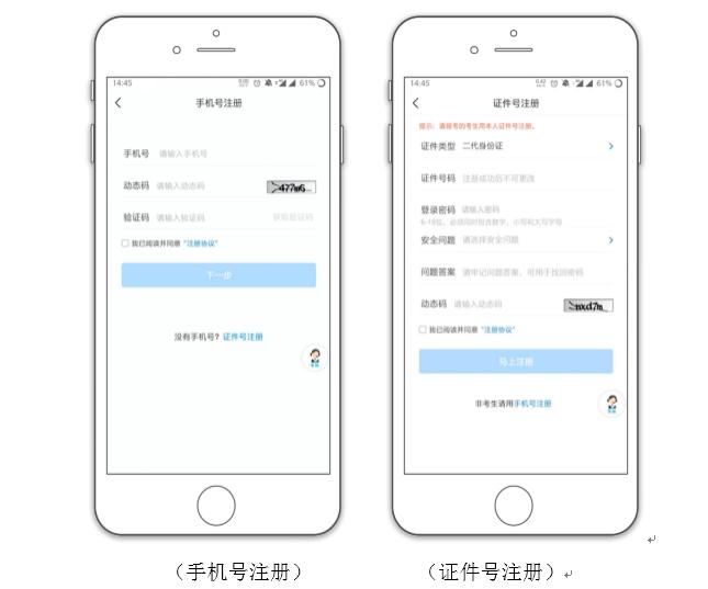 【方法一】证件号注册,考生直接输入身份证号码注册(家长请勿用自己的身份证号注册或绑定)