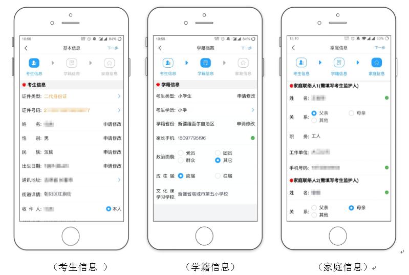 完善基本信息、学籍档案以及家庭信息等的填写,填写完成后可以点击下一步进入预览效果,考生确认无误后确认提交。