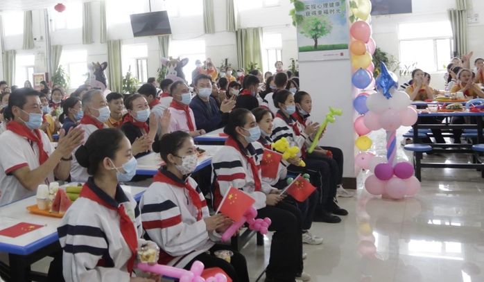 学生餐厅里,一片欢乐的海洋。活动在主题画展中拉开帷幕,全体师生代表齐唱少年先锋队队歌《我们是共产主义接班人》、进行《我和我的祖国》快闪,在音乐、舞蹈、戏曲专业同学们的精彩演出后,师生还为10名学生过了集体生日。在“技能成才·强国有我-写给2035年的我”采访环节中,同学们纷纷表示,要认真学好知识和本领,努力做祖国和人民需要的好孩子。教学楼实践剧场里,主题音乐会与传统文化京剧专场演出先后上场,同学们在《领航》的合唱歌声中感受伟大的中国共产党百年光辉历程,在京剧国粹艺术中领略中华优秀传统文化魅力,以国粹润童心,坚定文化自信,提升人文素养。