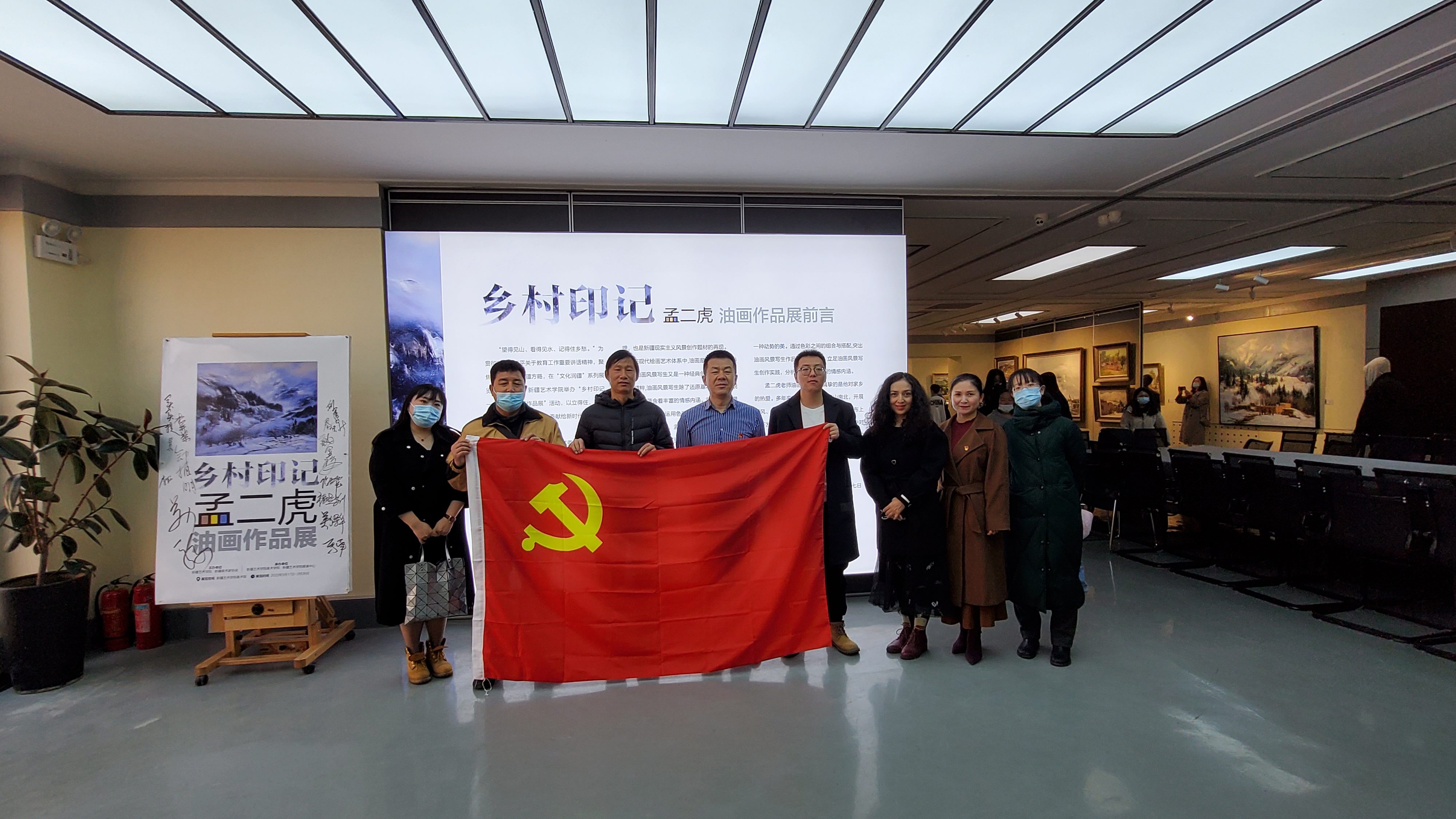 为推进文化润疆工作,推动新时代习近平中国特色社会主义思想和党的十九大精神落地生根,增强师生家国情怀,2022年3月26日,附中美术教学党支部在新疆艺术学院美术馆开展了主题党日活动。全体党员教师和学生前往新疆艺术学院美术馆参观新疆美术家协会油画艺委会委员、新疆油画学会理事、新疆艺术学院美术学院副教授、油画家孟二虎的“乡村印记”为主题的美术作品展,开展以美育人系列活动。