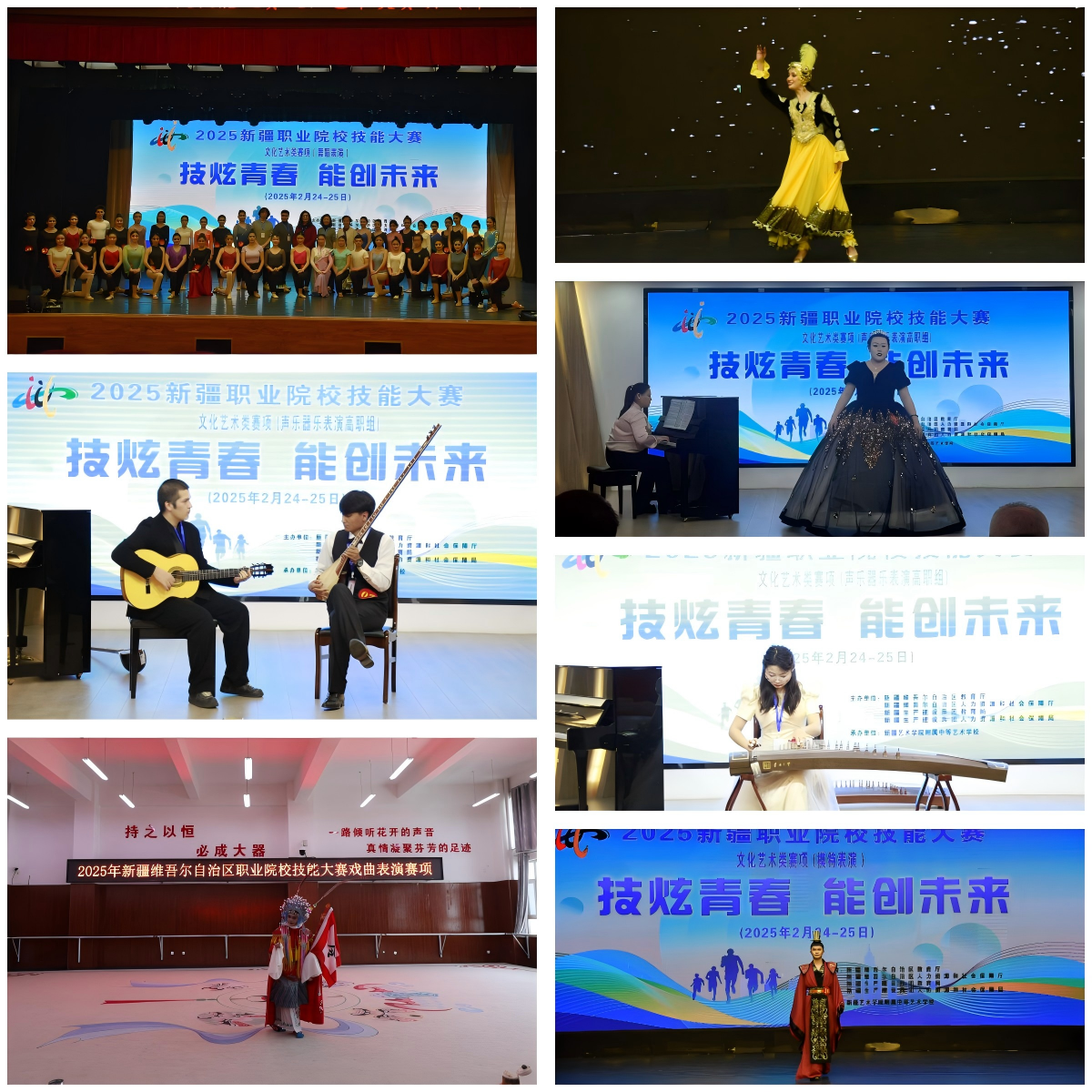 由新疆艺术学院附属中等艺术学校承办的2025年新疆职业院校技能大赛(文化艺术类赛项)圆满落幕。本届赛事由自治区教育厅等4个单位联合主办,吸引全疆83所中高职院校500余名师生参与舞蹈表演、戏曲表演、声乐器乐表演(中职组)、声乐、器乐表演(高职组)、模特表演五大赛项。