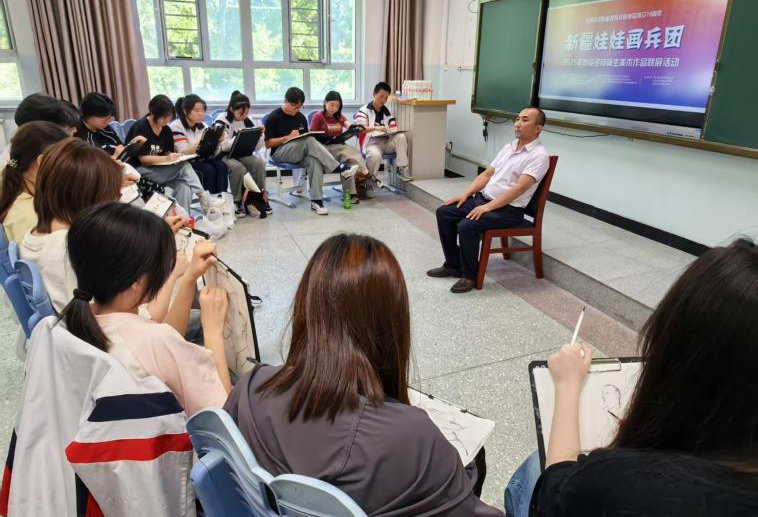 活动启动后,师生前往五家渠高级中学共同聆听兵团劳模代表的宣讲,徐金石、郑志义等模范代表以亲身经历讲述了他们扎根边疆、无私奉献的奋斗故事。随后,师生走进画室开展了“画劳模”速写写生活动,师生们用线条、明暗等艺术语言表达了对兵团劳模的敬意。“听了宣讲,我对热爱祖国、无私奉献、艰苦创业、开拓进取的兵团精神有了更加深刻的认识,我将努力传承,学好本领,为祖国的发展添砖加瓦。”新疆艺术学院附中学生王馨婕说。