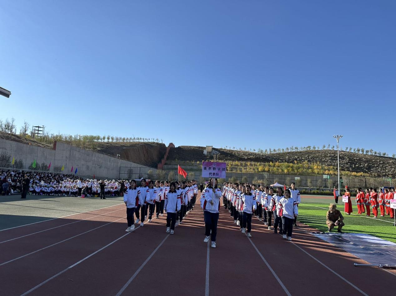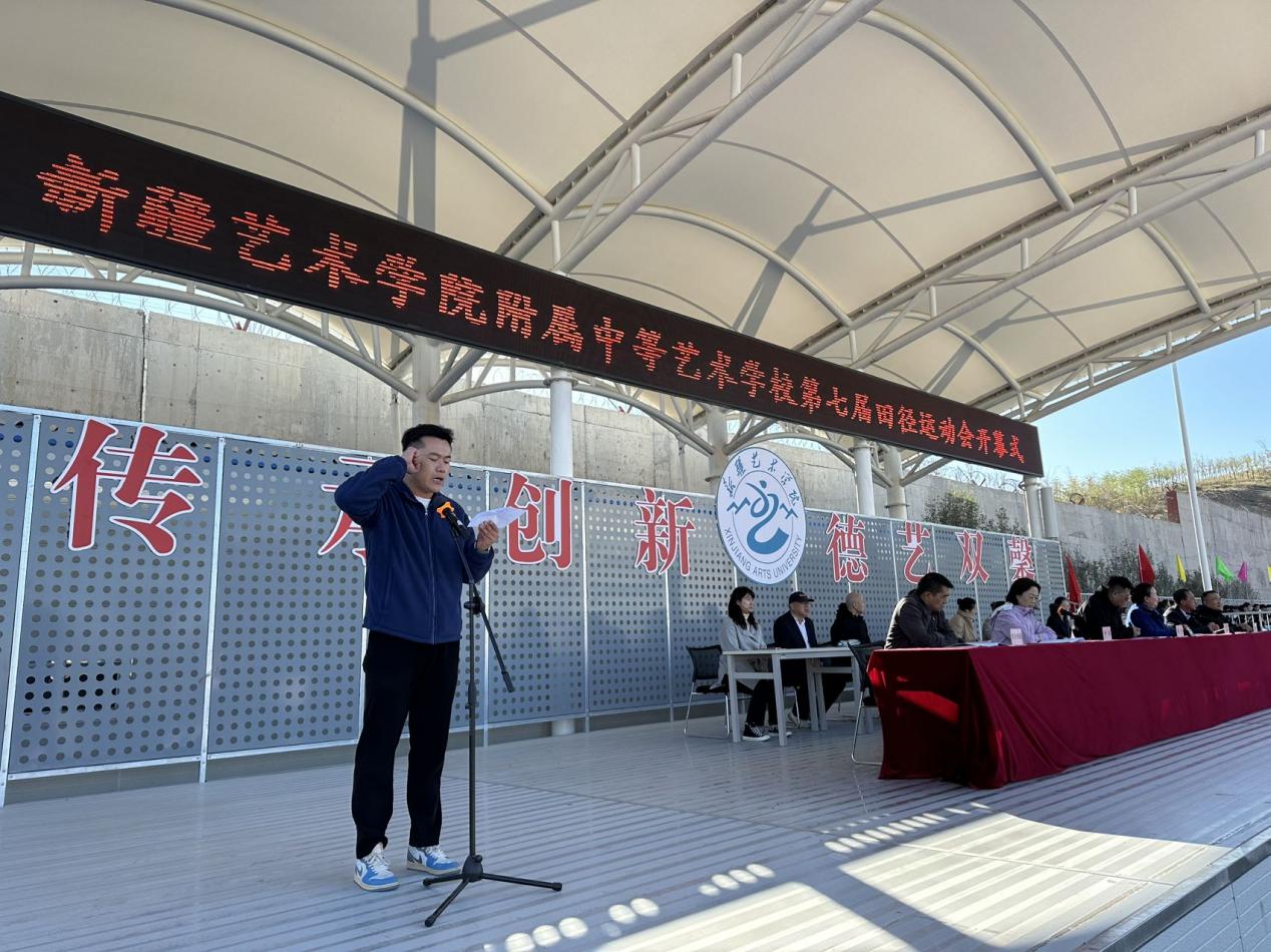 阳光明媚,秋风送爽,我校第七届田径运动会开幕式于今日上午在学校运动场隆重举行。全校师生齐聚一堂,共同见证了这一盛大的体育活动。首先由学校党委副书记、校长古丽扎尔·沙帕尔老师宣布:“运动会开幕!”;随后开幕式上,彩旗飘扬,口号响亮,展现出学生们的青春活力与无限风采。