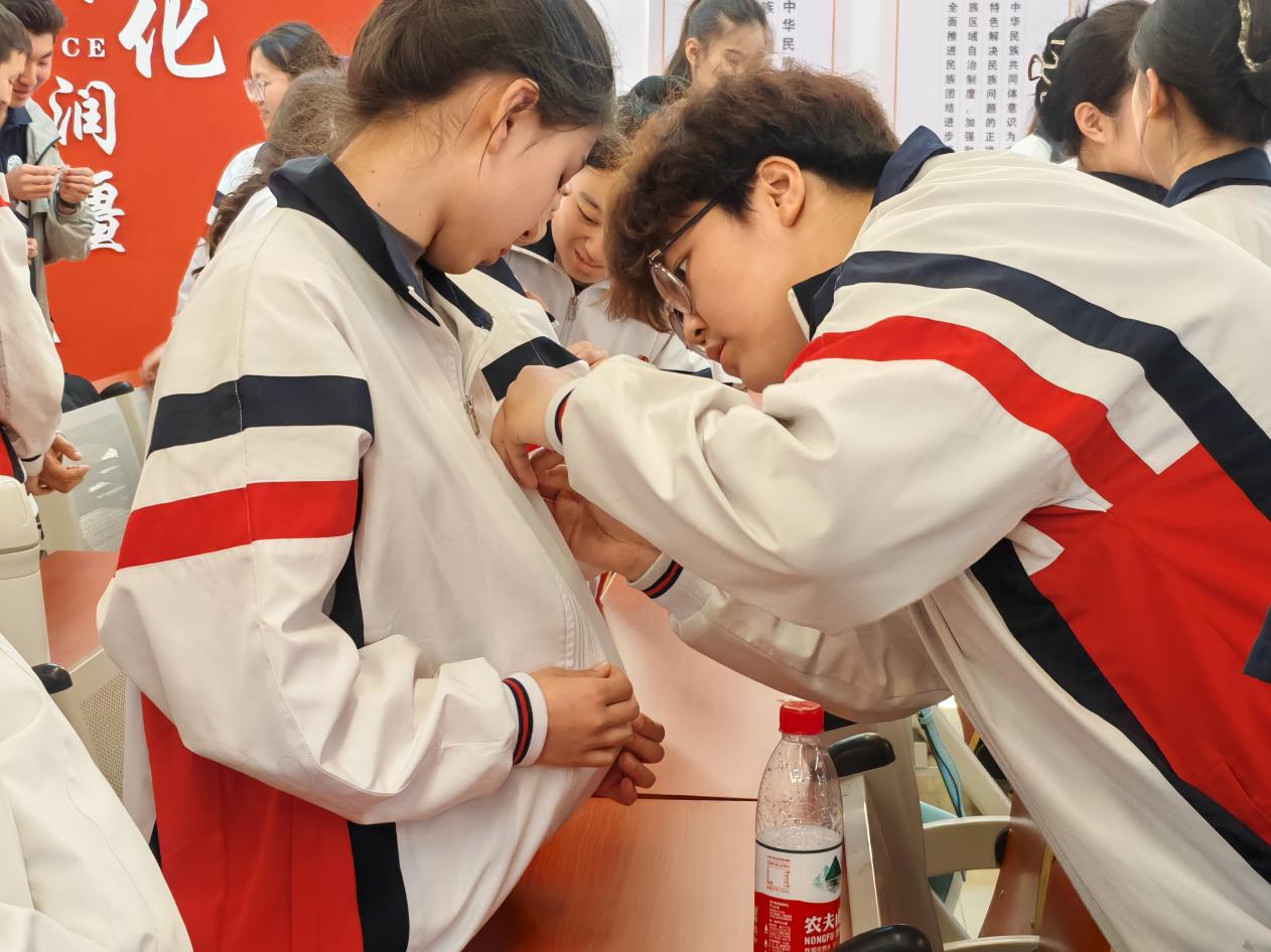 活动在庄严的国歌声中开始,全体新老团员齐唱国歌,随后附中党委委员、学生科科长李晓亮宣读新团员名单,全体参会人员对新团员加入中国共产主义青年团表示祝贺!颁发礼环节,全体老团员为新团员佩戴团徽、颁发团员证。