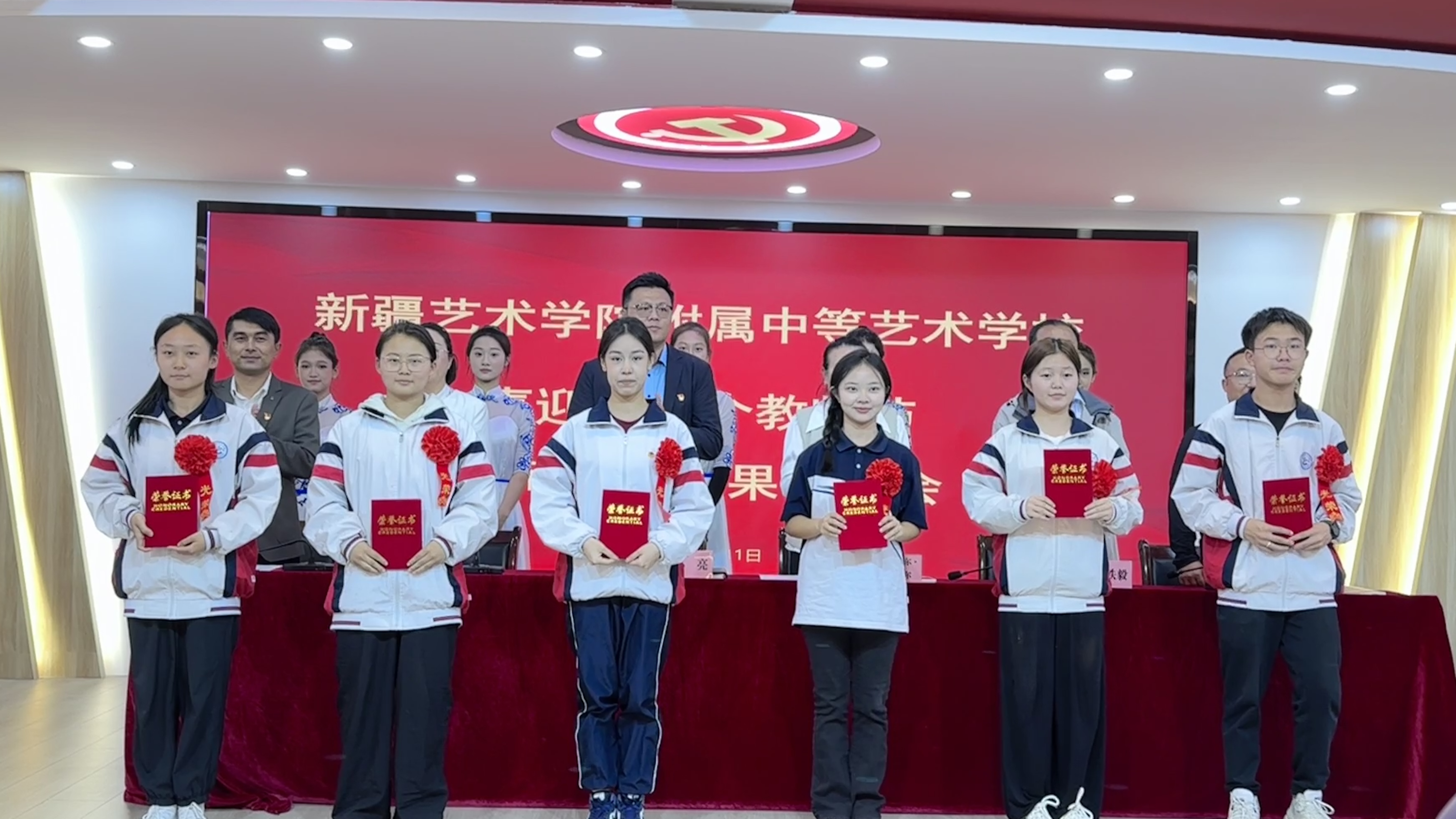 大会最后,附中党委向全体教师致以节日的问候,感谢他们为学校教育事业做出的辛勤付出和卓越贡献,并表示优秀教育教学成果是推动附中高质量发展的重要组成部分,未来学校将继续围绕为区内外高等艺术院校提高优质生源的发展目标,把学校建成“管理规范、产教融合、内涵发展、特色鲜明”的自治区优质中职学校。希望老师们不断加强自身学习,提高专业素养和教育教学能力,更好地履行教书育人的神圣职责以及为实现学校的长远发展目标而不懈努力。