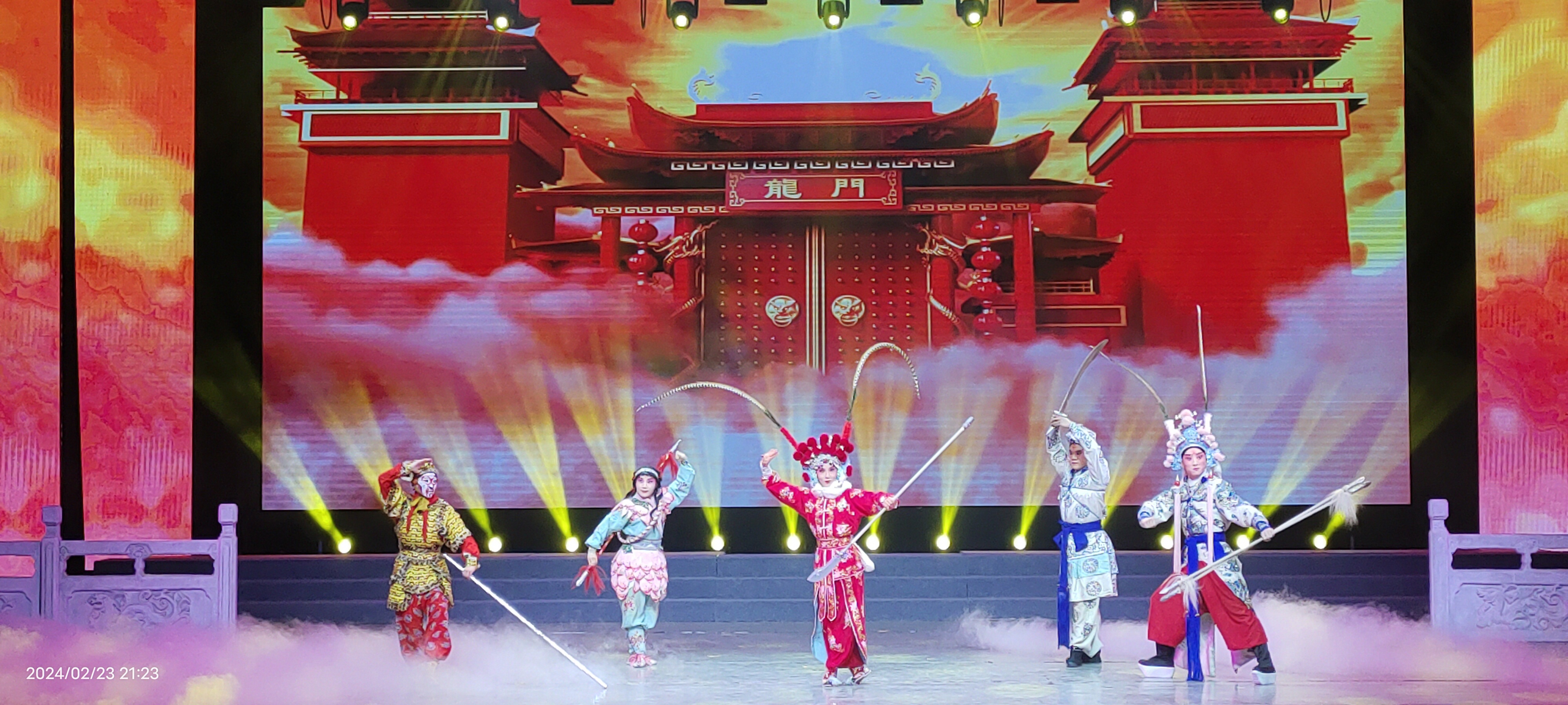 本场演出京剧、秦腔、越剧、黄梅戏等剧种百花齐放,新艺附中师生以精湛的唱腔、娴熟的技巧表演了京剧《四郎探母·坐宫》《赤桑镇》《鱼跃龙门》《武家坡》等节目,唱念做打俱全,场面喜庆吉祥,塑造了立体感十足的角色形象,用专业所学与现场观众喜迎元宵。