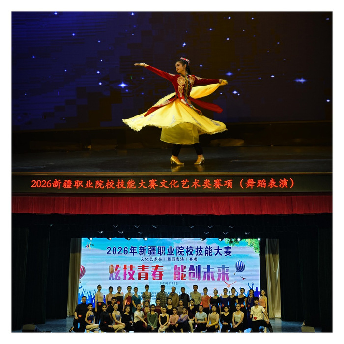 天山脚下艺韵飞扬,技能赛场青春绽放。11月1日,以“技炫青春 能创未来”为主题的2026年新疆职业院校技能大赛(文化艺术类赛项)在新疆艺术学院附属中等艺术学校圆满收官。赛事由自治区教育厅等4家单位联合主办,汇聚全疆42所职业院校的298名师生,同台角逐舞蹈表演、戏曲表演、声乐器乐表演(中职组)三大赛项。