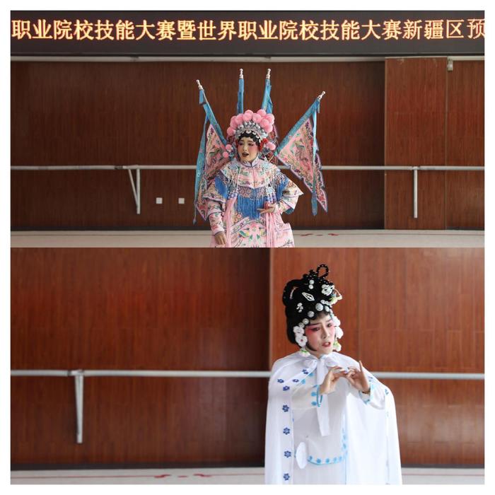 戏曲表演赛场余韵悠长,京腔的雅致、豫韵的质朴、秦声的豪迈在此交融。选手们一招一式见真章,一颦一笑传情致,不仅生动展现中华戏曲的深厚底蕴,更让观众直观感受到传统艺术在新疆职业校园绽放的时代新姿。
