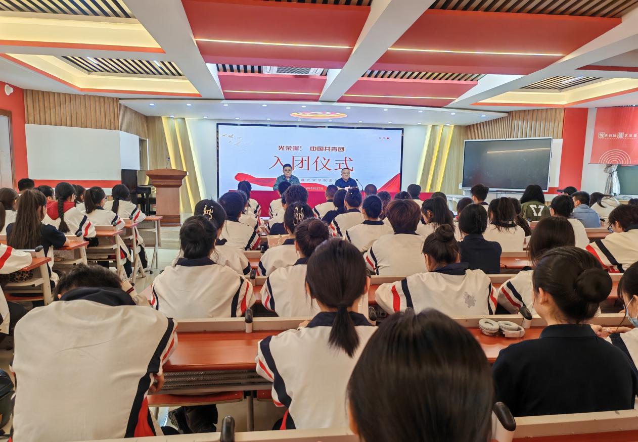 5月27日,新艺附中在德育大讲堂举行2024年新团员入团仪式,50名团员光荣加入中国共产主义青年团。