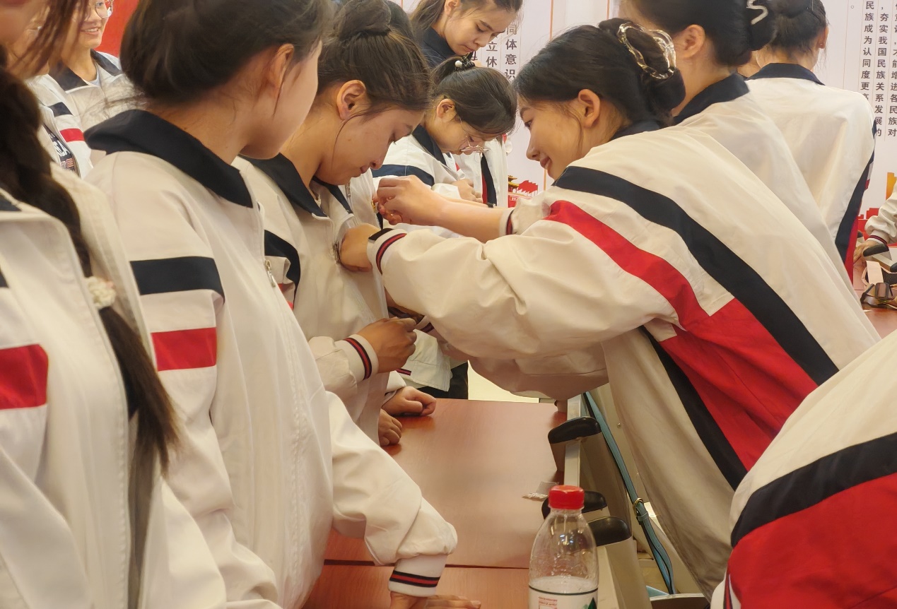 活动在庄严的国歌声中开始,全体新老团员齐唱国歌,随后附中党委委员、学生科科长李晓亮宣读新团员名单,全体参会人员对新团员加入中国共产主义青年团表示祝贺!颁发礼环节,全体老团员为新团员佩戴团徽、颁发团员证。