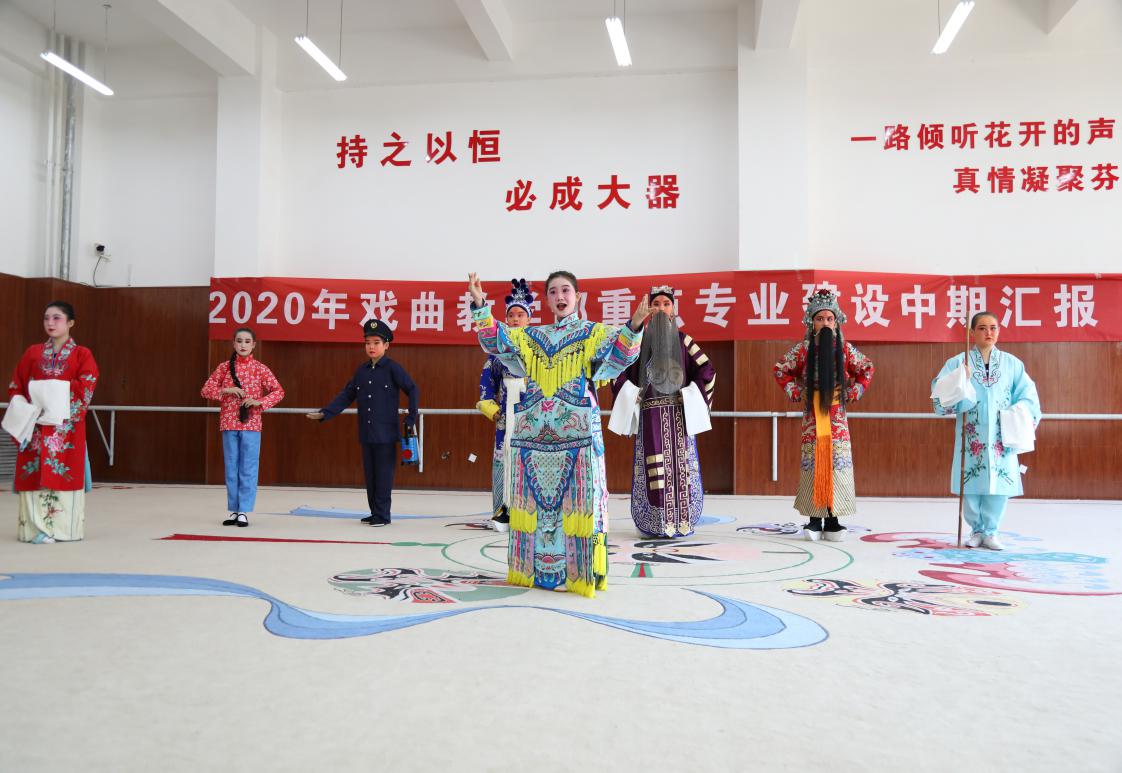 戏曲教学部2020年以特色品牌专业建设为重点,将戏曲艺术进一步发扬光大,彰显本民族文化自信,为传承经典文化,为弘扬戏曲艺术,为提高国家文化软实力,为实现中华民族伟大复兴梦而共同奋斗。提高人才培养质量为主线为根本,实现学校规模、结构、质量、效益均衡全面协调发展。遵循“专业建设与文化产业发展同步、培养目标与企业要求同步、技能训练与岗位要求同步、职业素养教育与企业文化相适应”的“校企合作建专业”专业建设理念,重点建设戏曲表演品牌专业,形成围绕舞台表演特色鲜明的专业群,成为自治区文化发展所需的高素质技能型专门人才的培养基地。